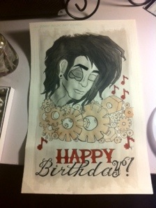 Also, I’ve been revisiting old work for a birthday card. Happy belated birthday to my bonus brother, Gabe! If you want to check out his awesome music and what he’s all about go ahead and click on the Digital Lizards of Doom links here on the page. I added ink, and watercolor to a sketch I did years ago in line for Harry Potter. Originally it was supposed to be in a comic I was working on but it double nicely as a birthday card. Check out the Art page for more of what I’ve been working on!